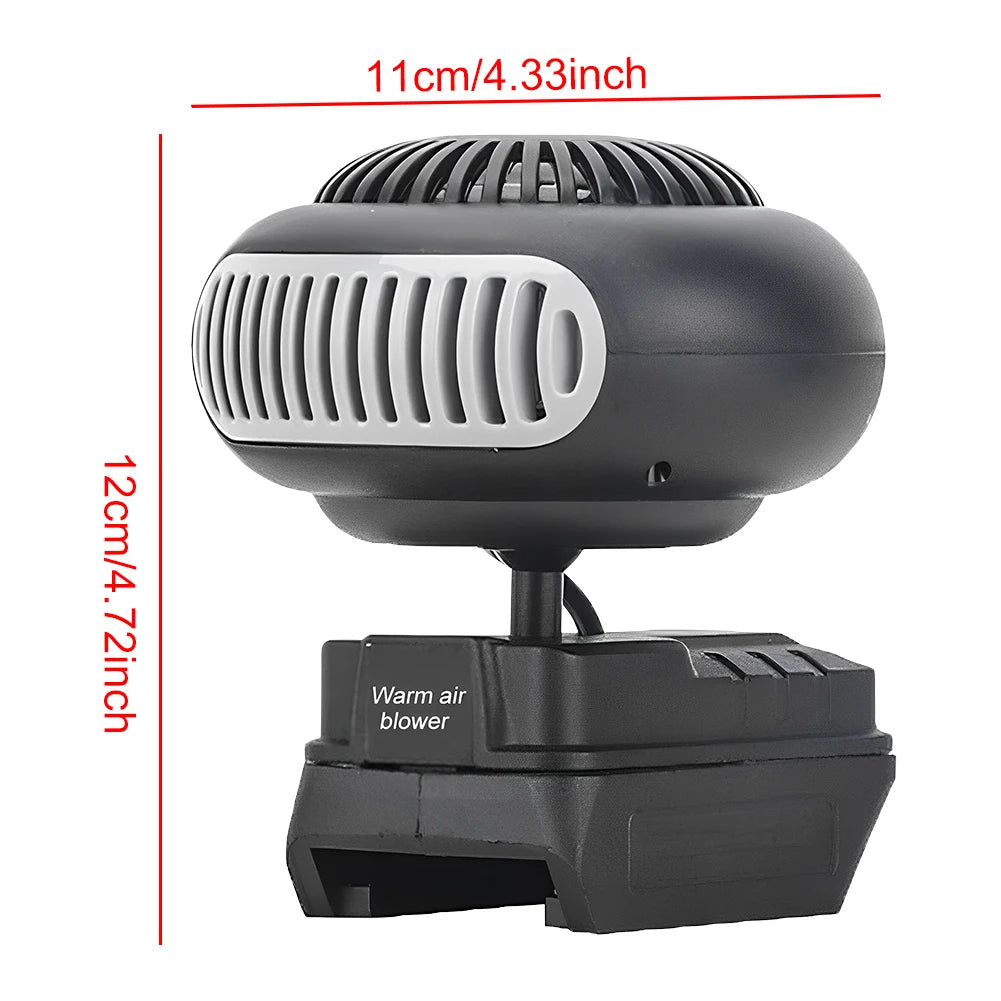 Compatível com baterias Makita 18V/21V, o aquecedor pode ser usado sem tomada, proporcionando liberdade total para aquecer qualquer espaço — no carro, camping, escritório ou quarto.